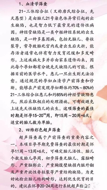 1、血清学筛查:怀孕15周-20周+6天